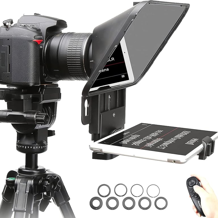 The teleprompter uses high-quality transparent glass, which reflects the text from your device while allowing you to maintain a clear view of your audience. This feature is particularly beneficial in dynamic environments where quick adjustments are necessary, such as during a live stream or when filming versatile video content.