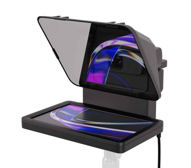 Because it’s built for a clean, on-desk creator workflow: fast setup, consistent readability, and a more “pro broadcast” look on camera—without feeling like you’re obviously reading.