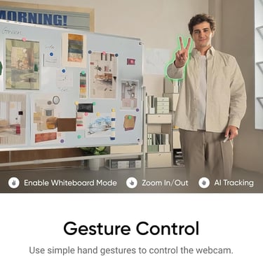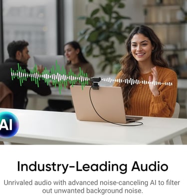 It’s a compact AI-powered webcam with smooth tracking and clear video.